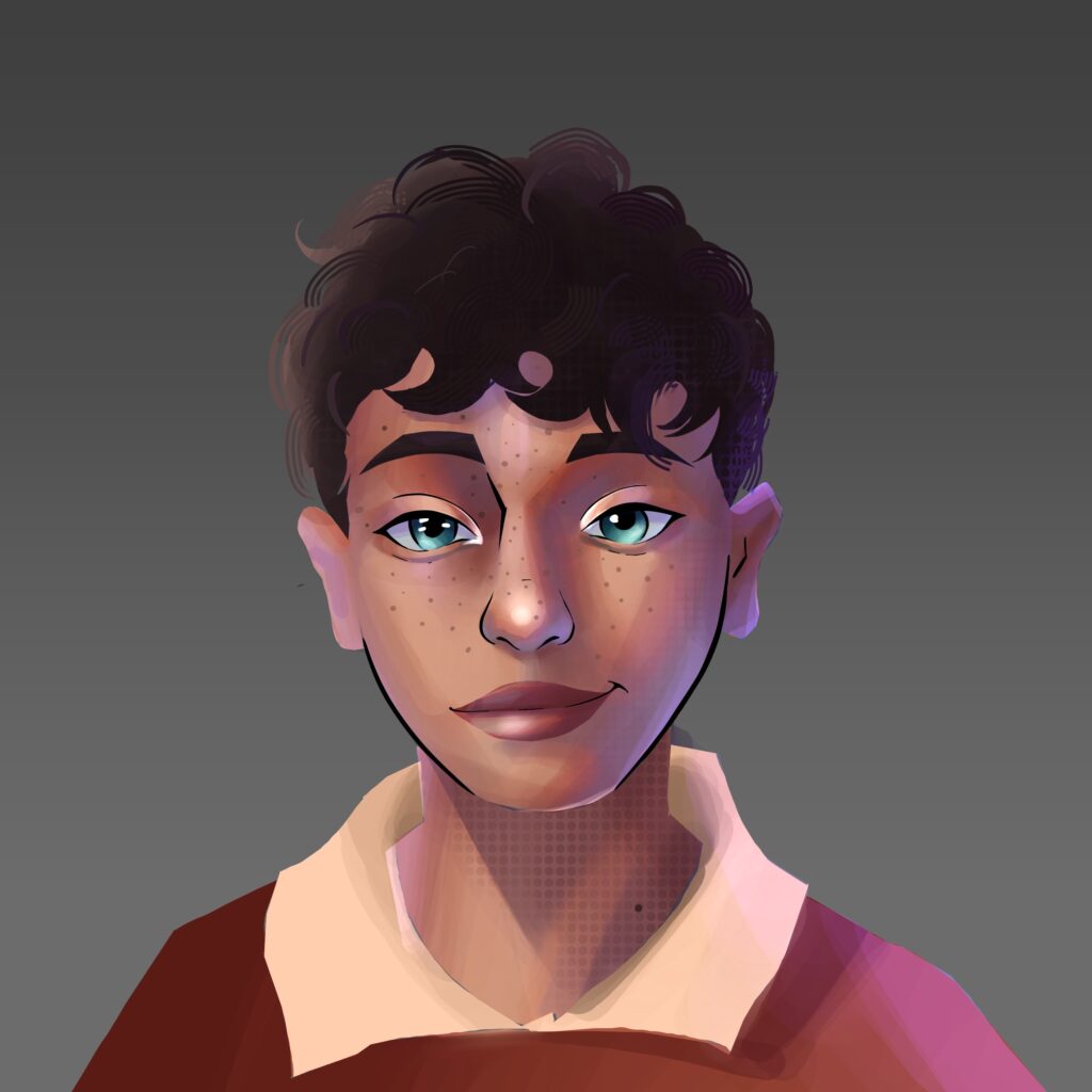 Autoportrait dans le style graphique du film Spiderman : Across the Spiderverse. Portrait de mon neveu dans le même style graphique